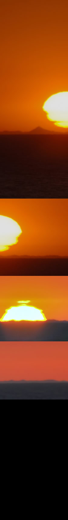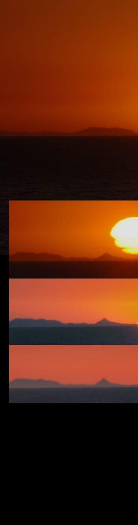 | Looming, Towering, Mock Mirage, Green Flash ~ Jim Grant�s sequence of sunset images from north of San Diego show all these atmospheric refraction effects. Notably, San Clemente Island some 70 miles away is visible with a definitely non-realistic mountain profile.