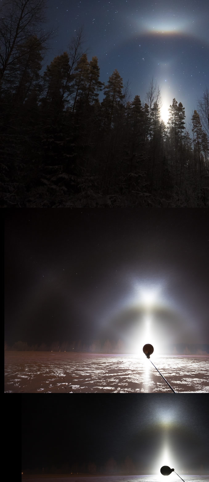 | Night Halos ~ A few of the many images from a night halo session by Jari Luomanen (atmospheric optics) in Finland on 25/26 Nov '13. "A very challenging night as the conditions kept changing. Temps ranged from minus 6.5 to minus 10. All in all, this was a nearly 14 hour hunt and a very enjoyable one too." All images ©Jari Luomanen, shown with permission |
