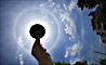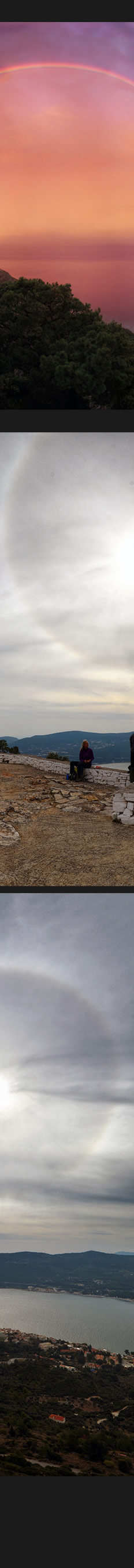 ~ Primary and secondary rainbows and (below) 22° halos sighted by Manolis Thravalos (more images) on the Greek island of Samos. Images ©Manolis Thravalos.